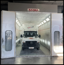 Peinture cabine haute performance, colorimétrie embarquée, rendu professionnel garanti.
